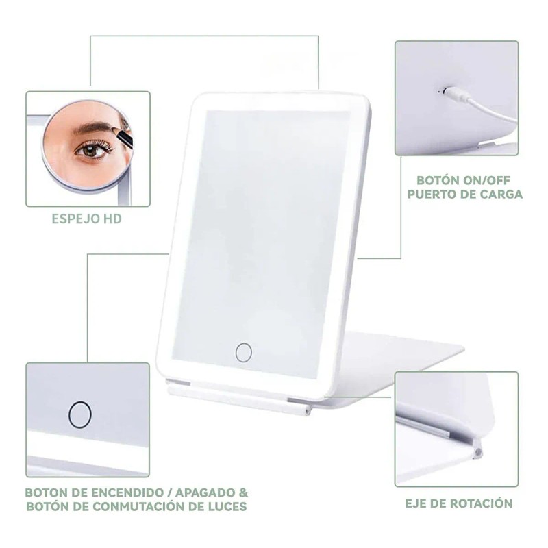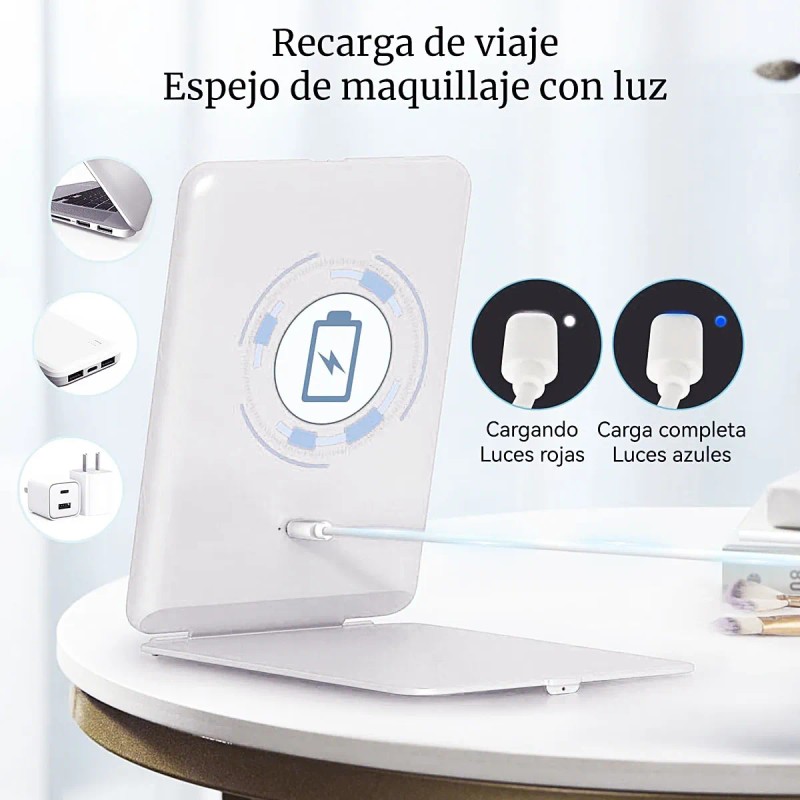 Espejo Para Maquillaje Con Luz Y Espejos Portatil Recargable
