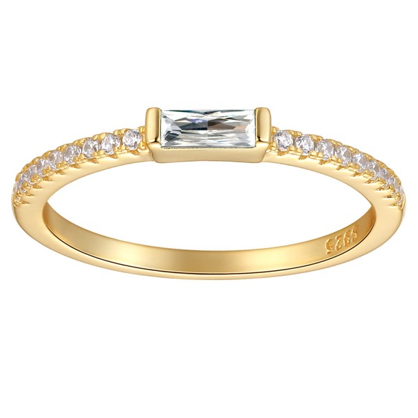 espere Emerald Baguette Ring | 18K Gold Stacking Ring | Minimal CZ Anniversary Band Size 4
