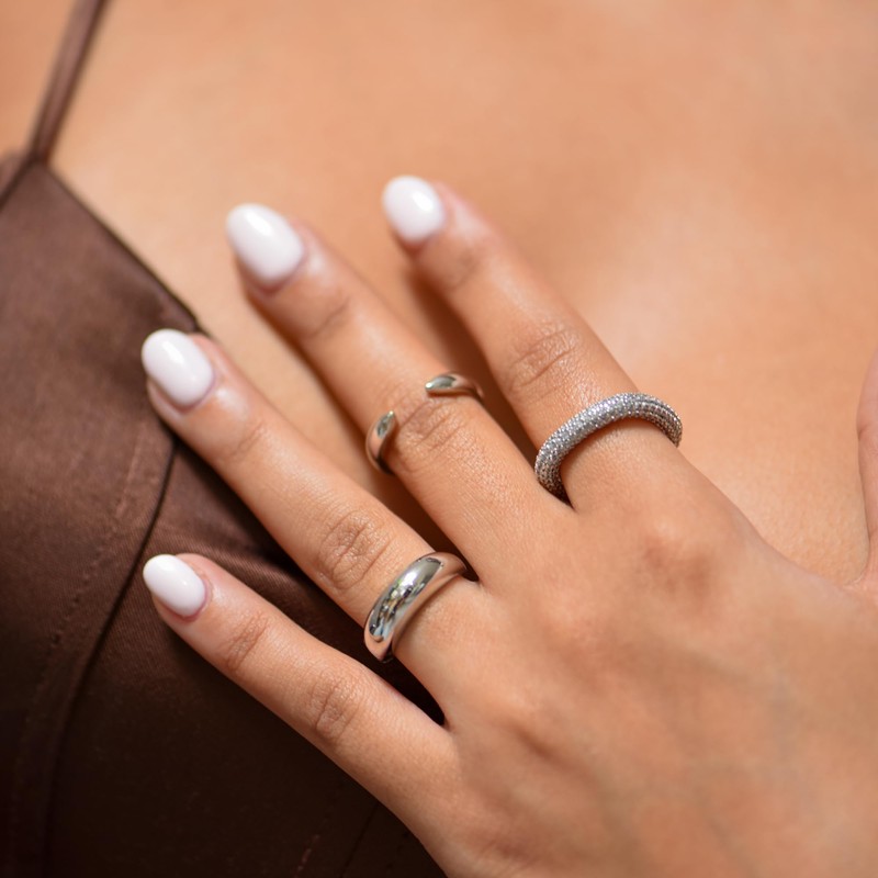 espere Rhodium Plated Sterling Silver Stackable Open Claw Ring Ajustable Wrap Ring | Highly Polished Cuff Stacking Rings