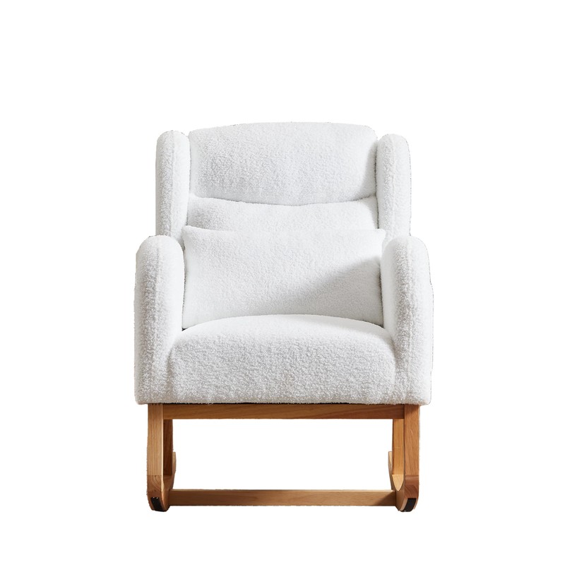 Elevate your relaxation with the ESPIDOO 27.2" Modern Rocking Chair. Designed for comfort and style, this high-backrest lounge armchair features ergonomic support, gentle rocking motion, and convenient side pockets. Perfect for living rooms, nurseries, or cozy reading nooks, its sturdy rubber wood frame and premium polyester fabric ensure durability and elegance.