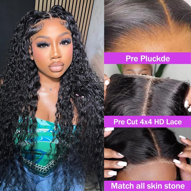 • 【4X4 Deep Wave Closure Wigs Human Hair】4X4 Hd Transparent Swiss Lace, A Pre-Plucked Hairline For A Natural-Looking Hairline And Pre Cut Lace By The Special Technical Scissor To Make Sure The Edge Is Stronger And Neater.In The Meantime Invisible & Breathable & Soft & Thin & Undetectable & Blended Very Well, Lace Could Be Melt Into Your Skin Perfectly. You Can Do The Middle Part, Side Part, C Part, Or Free Part