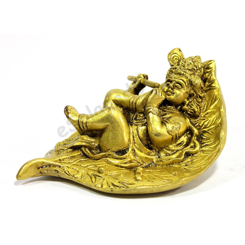 eSplanade - Baby Krishna Gopal Gopala on Leaf Idol Murti Statue Sculpture - Brass