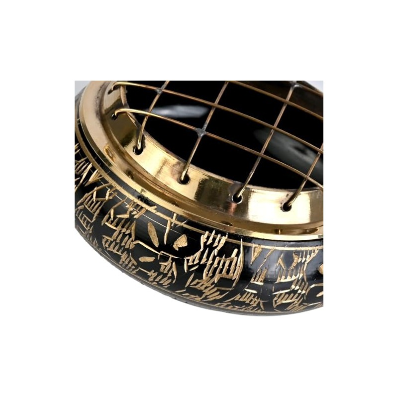 eSplanade Charcoal Incense Burner, Loban Burner, Brass Dhoop Dhuni Burner, Resin & Home Office Temple Prayer Butler, Round
