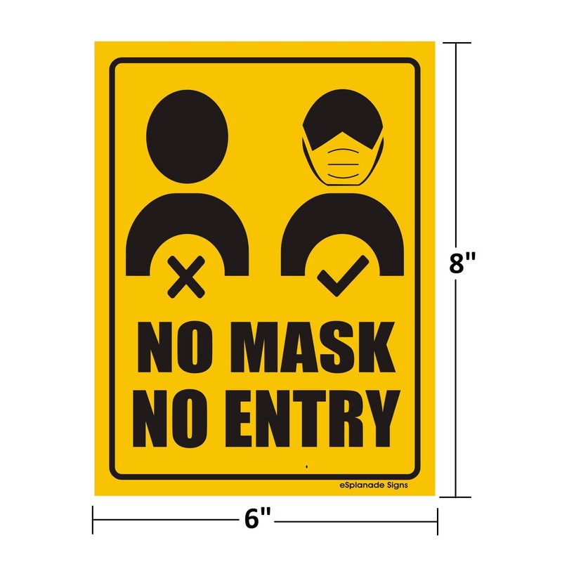 eSplanade No Mask No Entry Sign Sticker Decal - Easy to Mount Weather Resistant Long Lasting Ink Size (8" x 6")
