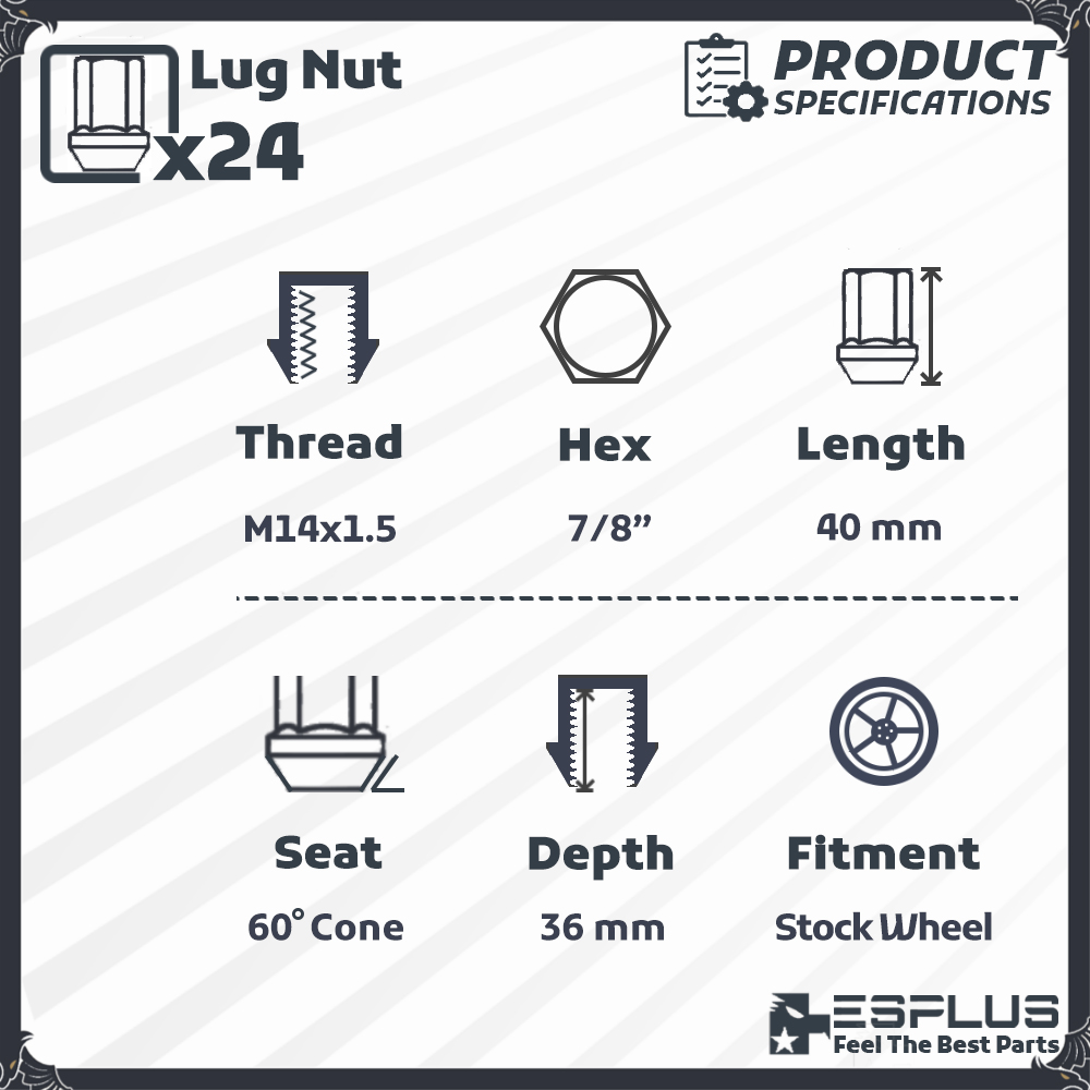 ESPlus 24Pc GMC OEM Lug Nut Black M14x1.5 Fit Acadia/Canyon/