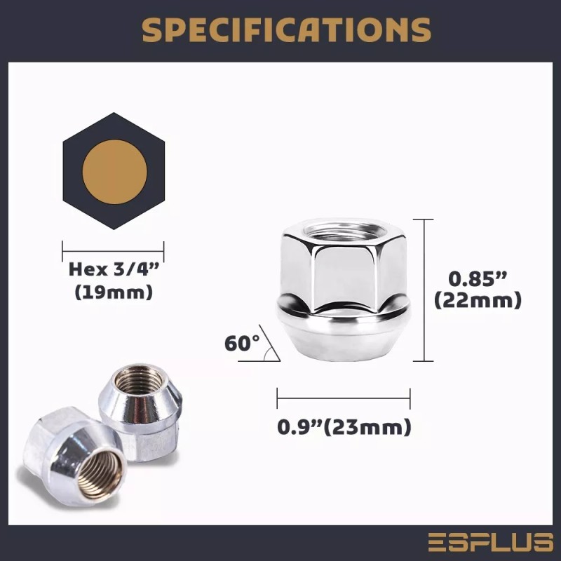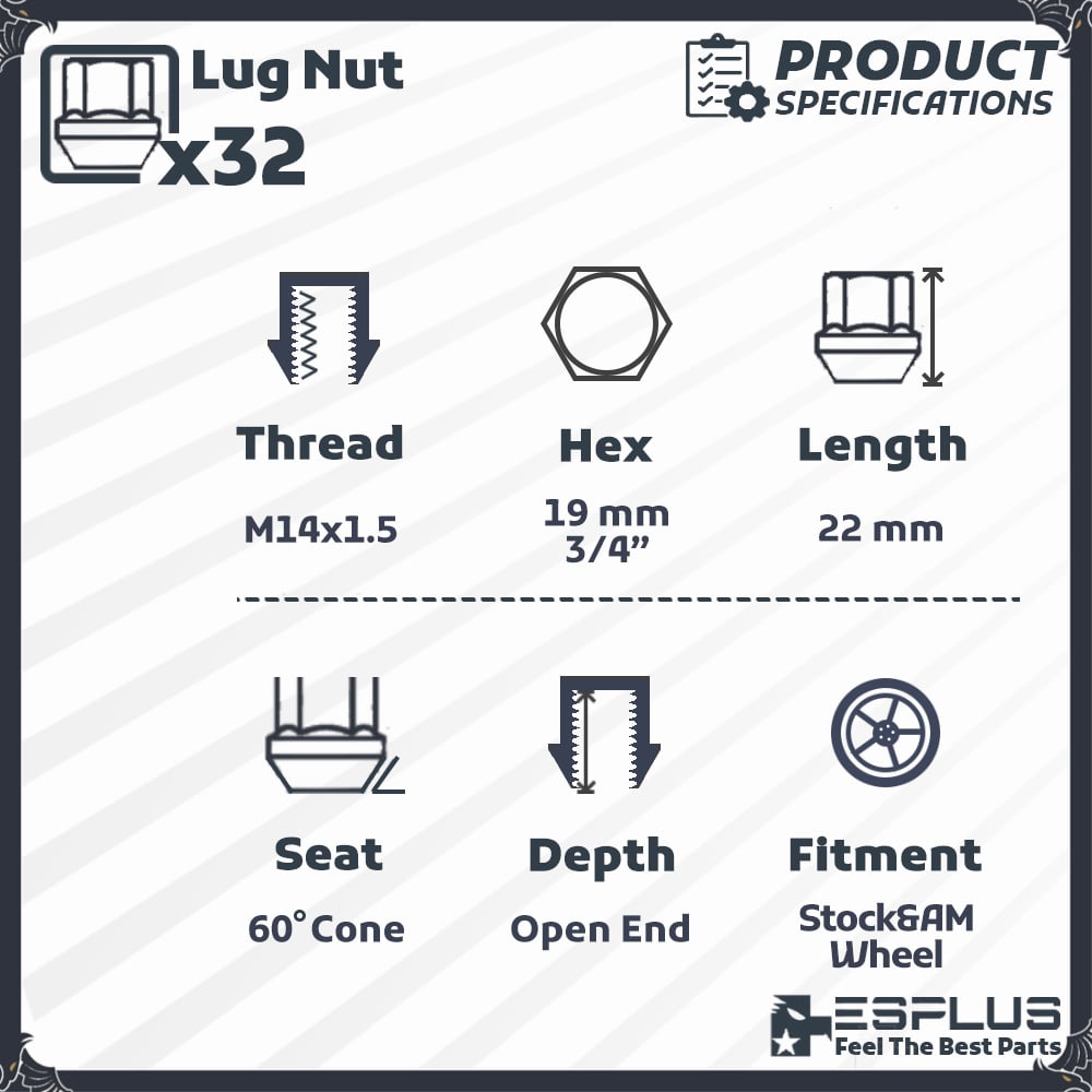 - Lug Nuts Overall Tallness: 0.85"(22mm)