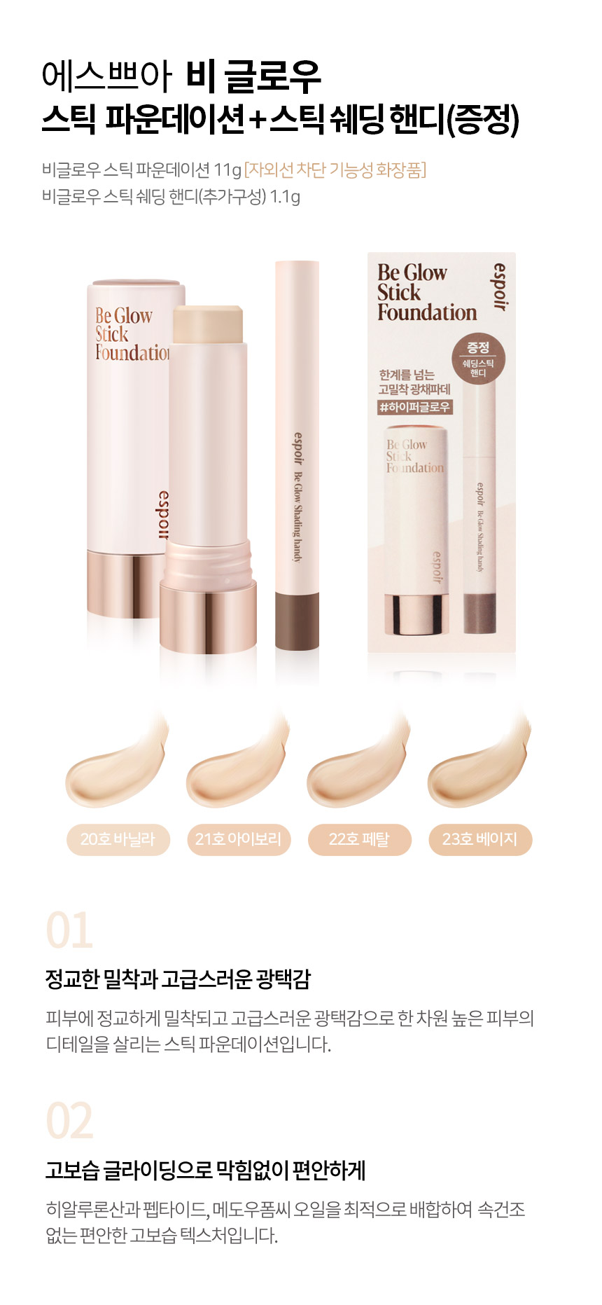 Espoir Be Glow Stick Foundation 11g + Shading Stick / 에스쁘아 비 글로우 스틱 파운데이션 11g + 쉐이딩 스틱