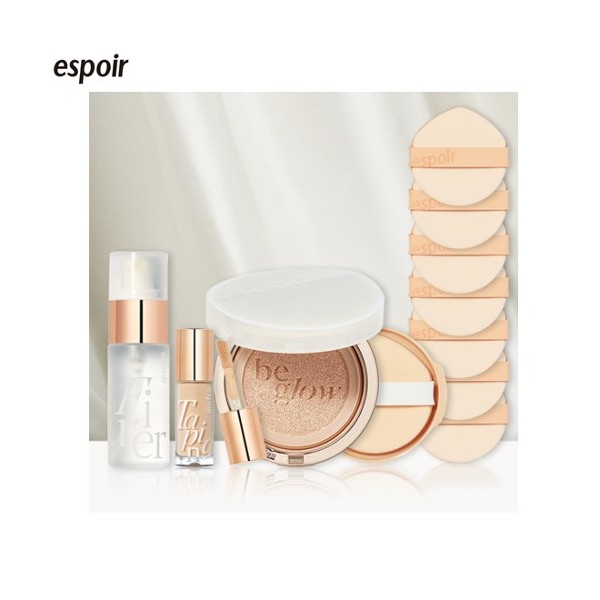 ESPOIR Protailor Be Glow Cushion New Class With Concealer + Setting Fixer + Puff Set 11items [Golden Hour Edition], Shade:Petal