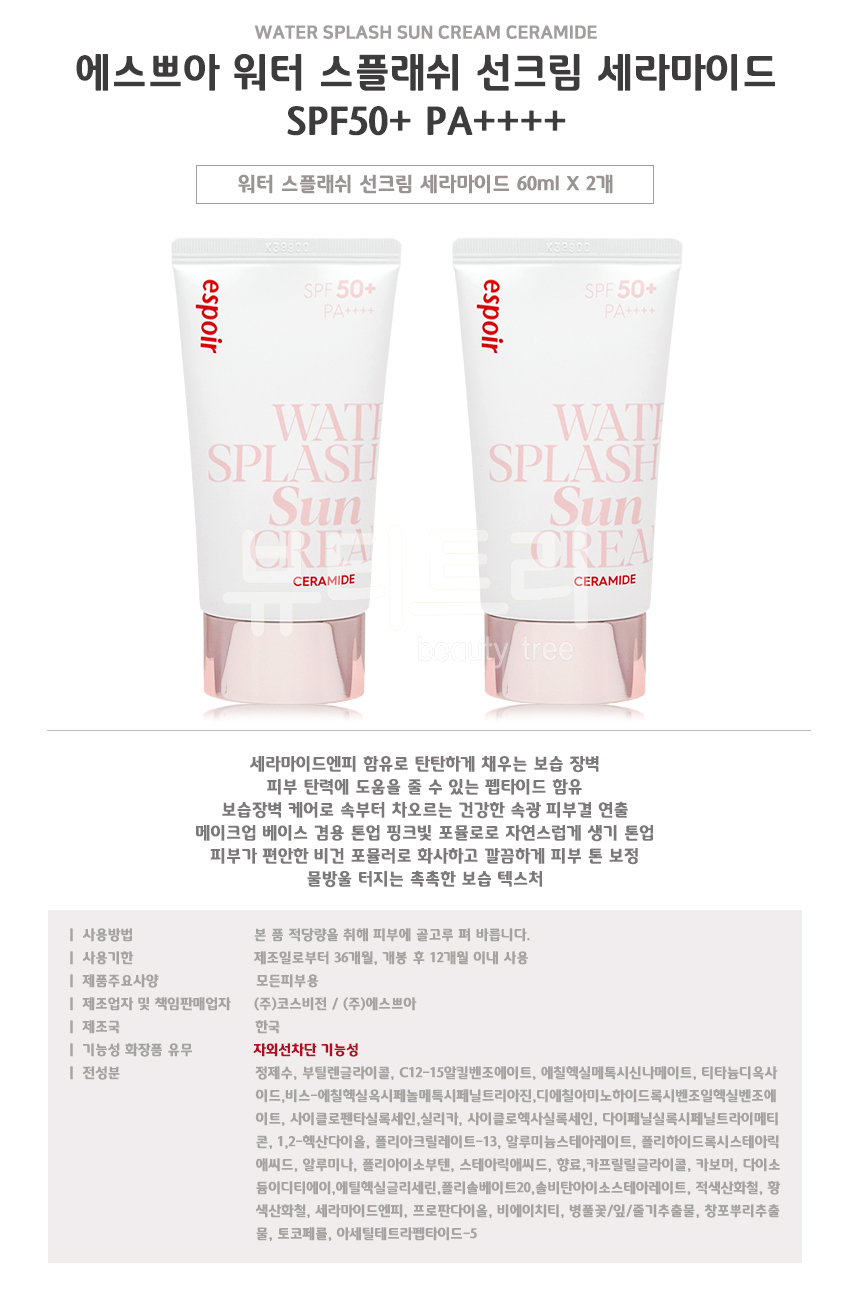 Espoir Water Splash Sunscreen Ceramide 60ml+60ml / 에스쁘아 워터 스플래쉬 선크림 세라마이드 60ml+60ml