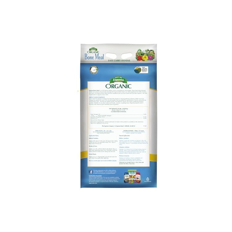 Espoma Organic Traditions Bone Meal is an all natural source of organic phosphorous and nitrogen. Domestic bone meal is pure, with no additives or fillers. Use when planting bulbs and all perennials - promotes root and flower growth.