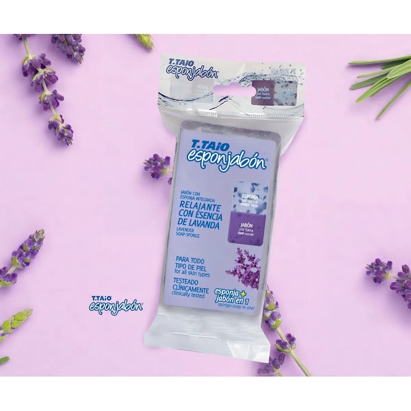 Esponjabon T.TAIO Lavanda Relajante 2 en 1 (Esponja + Jabón) 120g – ¡Doble Beneficio para una Piel Radiante y Relajada!