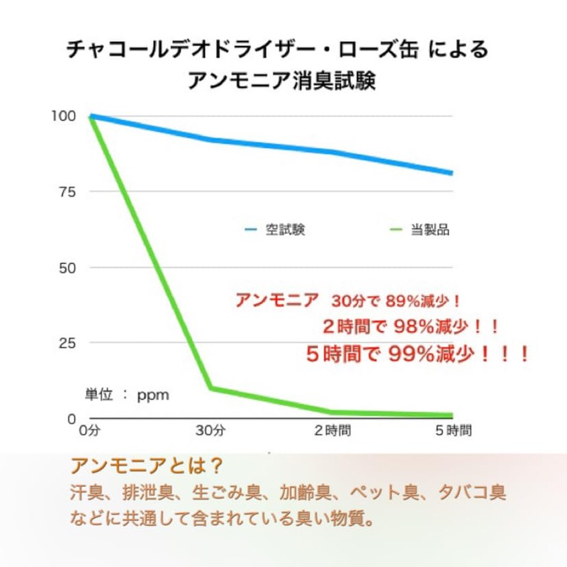 - Epressivo flower and aroma created charcoal deodorizer that is sustainable and decorative. Rose shaped charcoal in palm-sized tin. For smells on wooden clogs, toilets, refrigerators, and pets. Third-party tests show that ammonia decrease 89% in 30 minutes and 99% in 5 hours. This item is made from carbonized rice husks. Rice husk is the skin on the outside of the rice that is harvested during fine rice. Every year, since rice farmers generate a large amount of rice husks, they seem to be disposed of them. At espressivo, we focused on the deodorizing effect of charcoal made from this unnecessary. In fact, there are cases where they are used on the floor of the barnyard as a countermeasure against odors. Due to the nature of the product, small air bubbles may appear or not uniform color