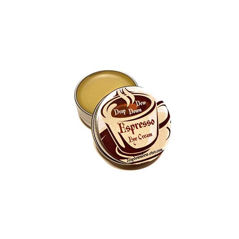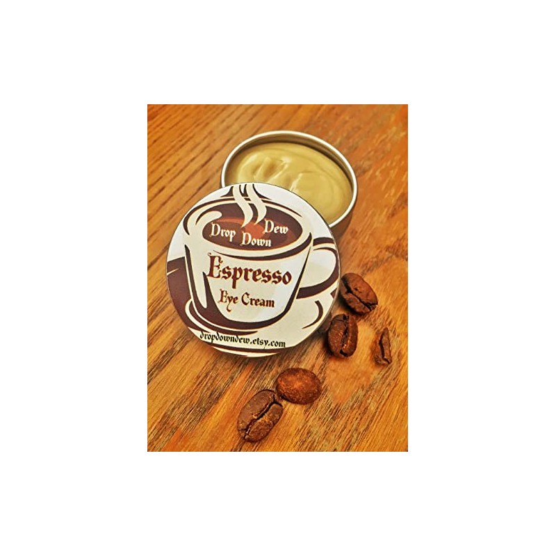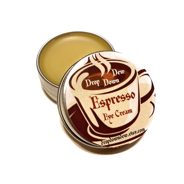 We drink it, we smell it, we love it~Coffee! Wake up tired eyes and improve skin with Espresso Eye Cream! The caffeine in coffee has wonderful benefits that make it ideal for skin care. It tightens skin, minimizes swelling and may reduce dark under eye circles. This potent eye cream also contains oils that fight premature aging, soften and moisturize. ☕ Swipe pinky finger on cream and gently dab a small amount (a little goes a long way) under eyes. DO NOT GET IN EYES.☕ Because my products are natural and contain no preservatives or stabilizers, they are often heat-sensitive. If melting occurs, simply refrigerate to restore; this will not affect its properties.☕Ingredients: yellow beeswax, coffee-infused prunus amygdalus dulcis (sweet almond) oil, raw virgin African shea butter, grapeseed oil, organic unrefined coconut oil, tocopheryl acetate (natural Vitamin E), organic wildflower honey, vanilla and coffee extracts ☕ Please be aware that, due to the intimate nature of our products, for health and safety reasons, we cannot accept returns or exchanges. PLEASE TEST PRODUCT ON A SMALL AREA OF SKIN BEFORE USE.