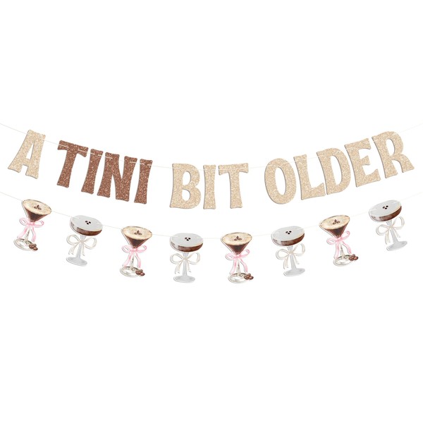 - Celebration Banner: Elevate your birthday festivities with this eye-catching 'A Tini Bit Older' banner, perfect for espresso martini-themed parties