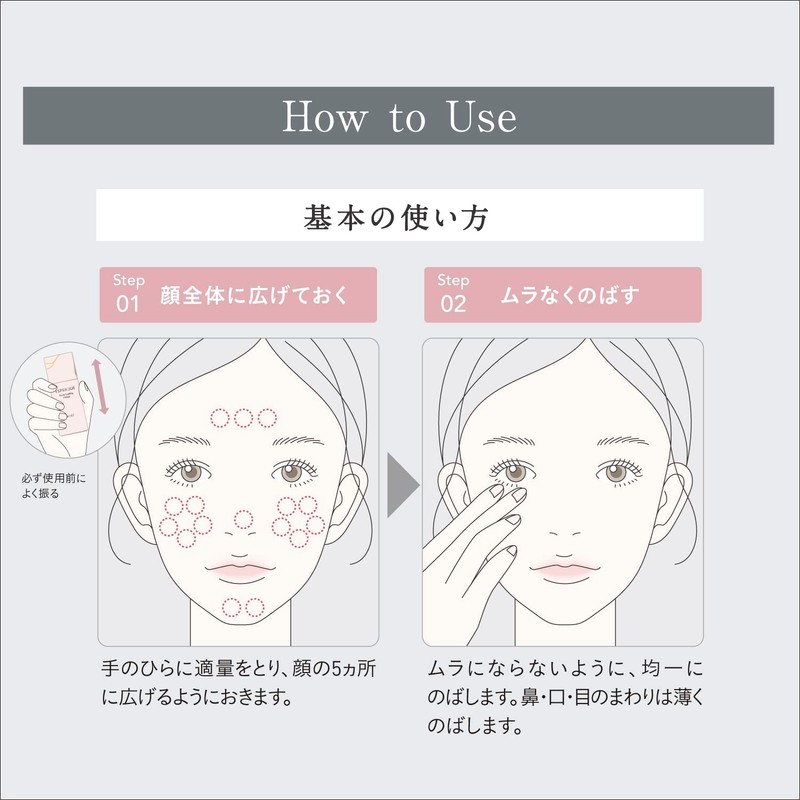 - Completely removes makeup A makeup foundation that is resistant to shaking, and staining. A makeup base that prevents splintering with sebum, dryness, and expression-related movement. It can achieve excellent makeup texture and a beautiful finish
