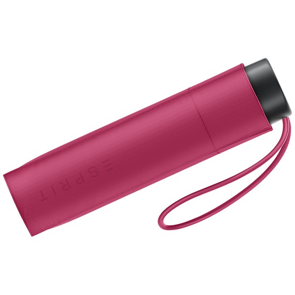 • This very small pocket umbrella from ESPRIT features a plastic handle with relief logo and an elastic wrist strap in the same shade as the umbrella canopy. The metal frame with fibreglass components is black and has a semi-transparent push-and-pull slider. The roof is covered with recycled polyester, which is environmentally friendly PFC-free.