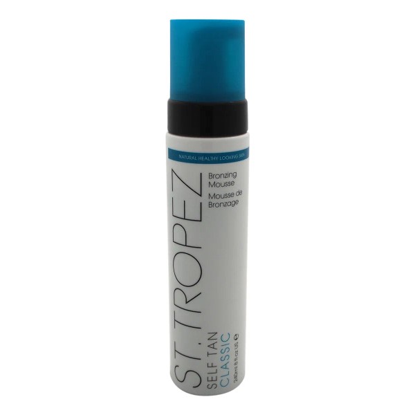 Key Features -------------------- - Luxurious foam formula enriched with nourishing aloe vera juice for soft, conditioned skin. - Delivers a rich, deep, and natural-looking tan that lasts for up to 10 days. - Fresh, delicate fragrance for an enjoyable tanning experience. - Quick-drying formulation that leaves no sticky residue, making it ideal for all skin types. - Suitable for both women and men, ensuring versatile and inclusive usage. Fact Sheet -------------------- - Volume: 236 ml (8 fl oz) - Formula Type: Mousse - Skin Type Compatibility: All skin types - Tan Duration: Up to 10 days Achieve a beautiful, sun-kissed glow without the harmful effects of UV exposure with St. Tropez Self Tan Classic Bronzing Mousse. This dermatologist-tested formula is specially designed to provide natural-looking color while moisturizing and rejuvenating your skin. The addition of aloe vera ensures that your skin feels hydrated and silky-smooth after application. The mousse consistency allows for easy blending and even coverage, resulting in a seamless tan. Infused with a refreshing fragrance, my self-tanner not only looks good but smells great too. Perfect for special occasions or everyday use, this bronzing mousse is your go-to for achieving that sunlit radiance any time of the year. Whether youre preparing for a night out or simply want to enhance your natural complexion, St. Tropez Self Tan Classic Bronzing Mousse is an essential addition to your beauty routine. Enjoy a flawless finish with this unisex self-tanner that makes everyone look and feel their best.