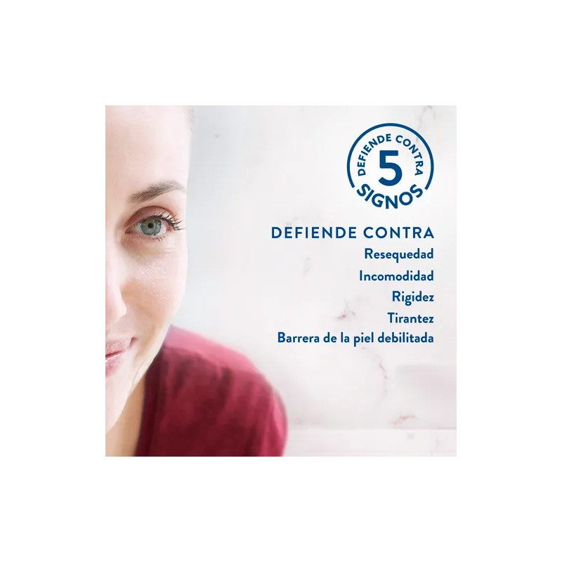- Protege contra los 5 signos de la piel sensible: resequedad, incomodidad, rigidez, tirantez y barrera de la piel debilitada.