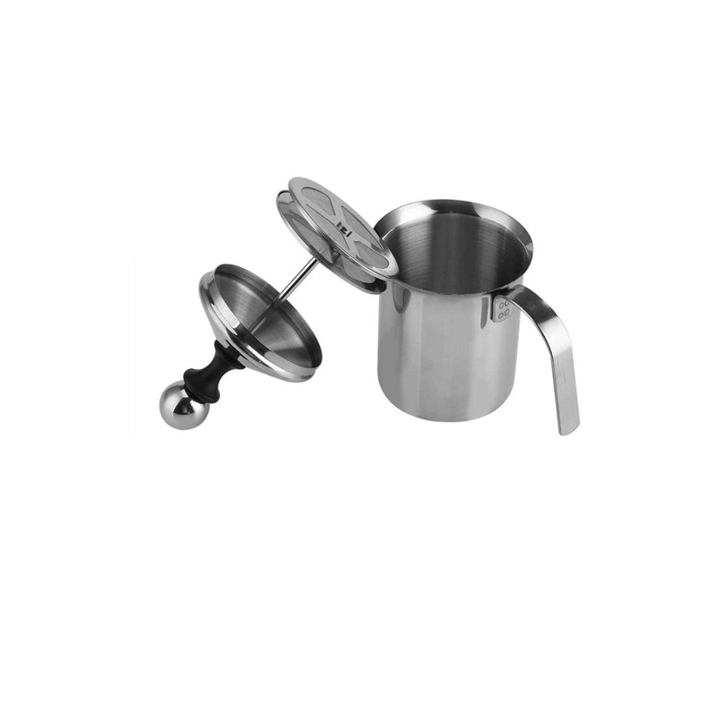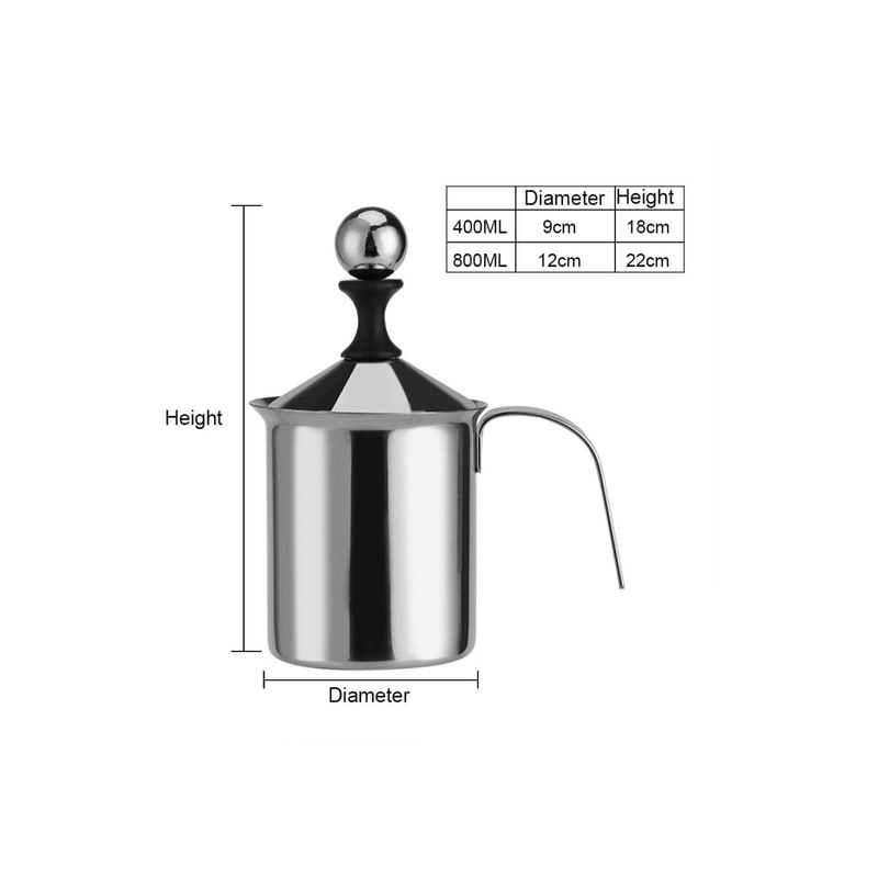Espumador de leche manual, acero inoxidable 400ML / 800ML Espumador de leche manual Café de doble malla Cappuccino Foamer Creamer(400ml)