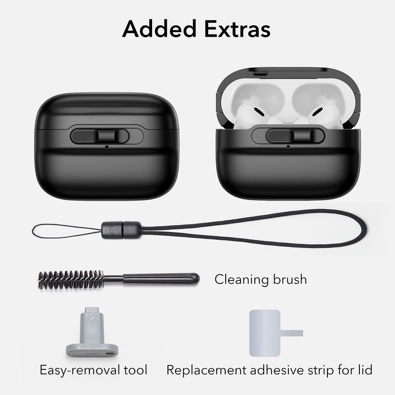 - Drop-Proof Lid Lock: strong magnets with 700 g of holding force in the top and bottom of the lid and an internal latch keep your AirPods locked safely inside so they won’t pop out if dropped