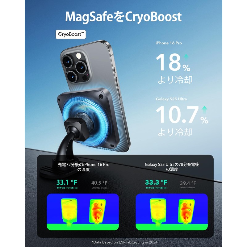 ESR Qi2 15W Charging Magsafe In-Car Smartphone Holder Car Qi2 Certified Magsafe Charger CryoBoost Fast Charging Upgrade Type Smartphone Cooling Air Conditioner Louver/Dashboard Wireless Car Charger