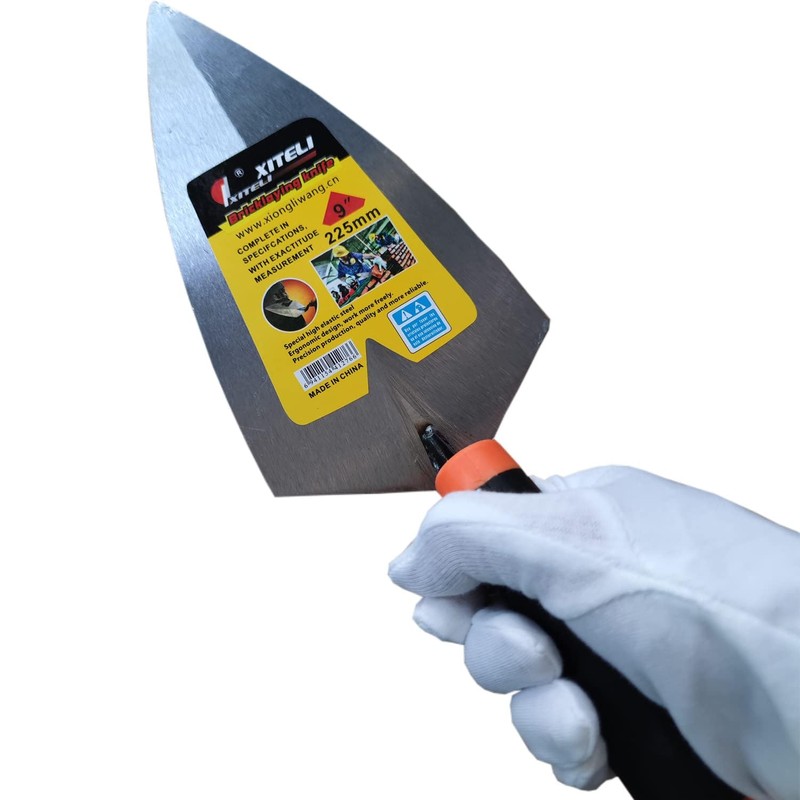 9" Brick Trowels(Blade length: 225mm/9”;Blade width: 116mm/4.6”;Grip length: 125mm/5”).
