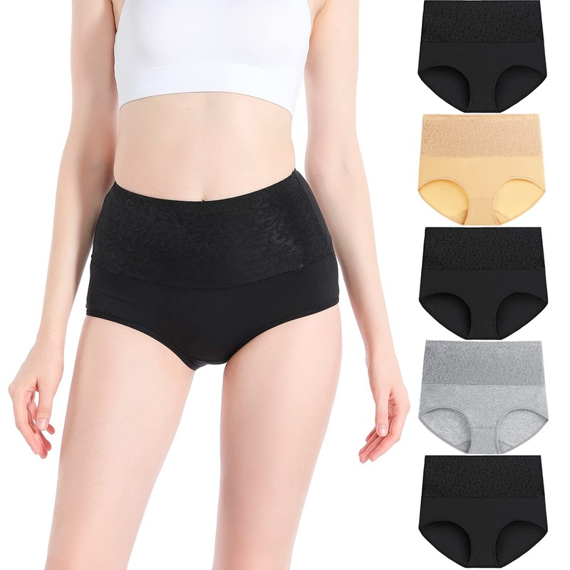 Esrinse Women's High Waist Cotton Underwear Full Coverage Briefs Tummy Control C-Section Recovery Panties (5 Pack-Black/Beige/Gray, XX-Large)