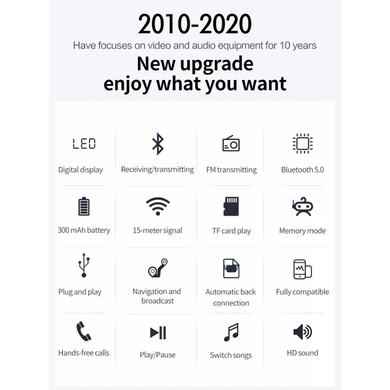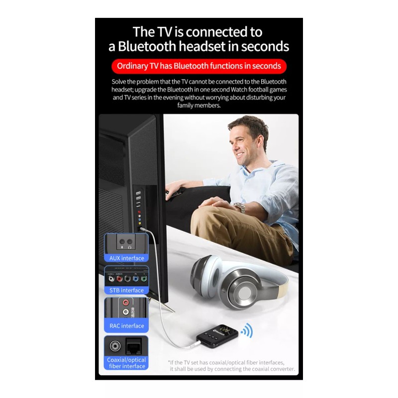 Latencia y amplio rango de transmisión: la calidad del sonido ha pasado pruebas profesionales y el transmisor inalámbrico Bluetooth 2 en 1 puede ayudarte a escuchar el sonido real sin ningún retraso. Y distancia de transmisión de la señal Bluetooth de hasta 10M, transmisión de larga distancia sin obstáculos.