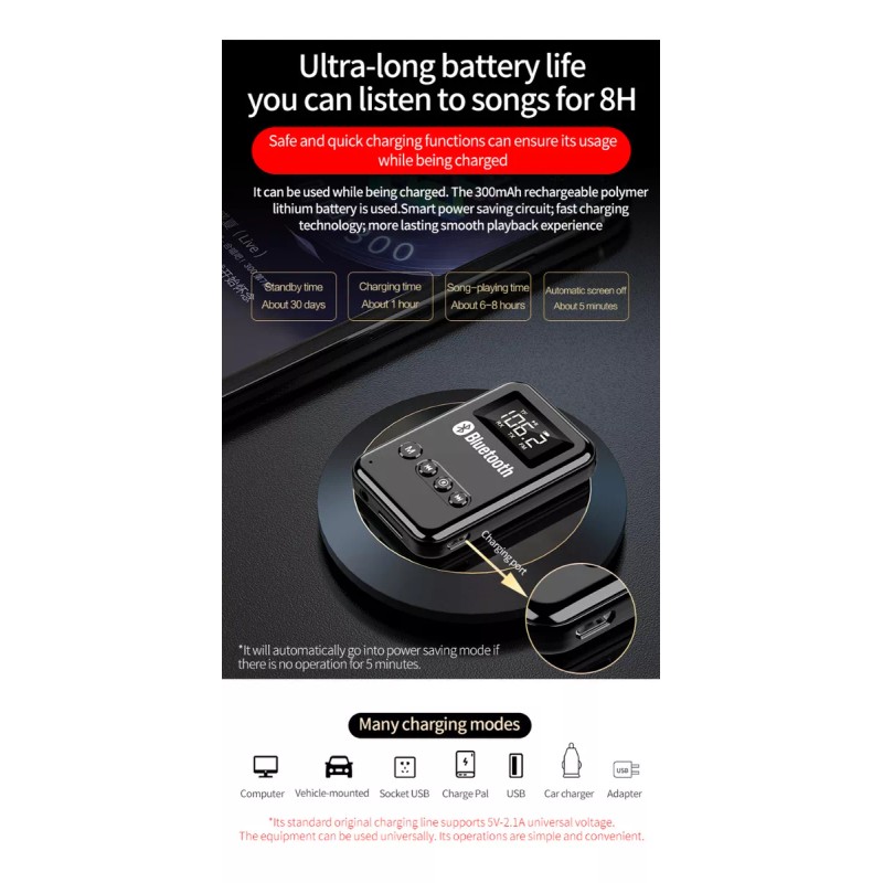 Fuente de alimentación USB: alimentada por USB, no hay necesidad de preocuparse por problemas de batería. Y el receptor Bluetooth es mini, ligero y fácil de llevar.