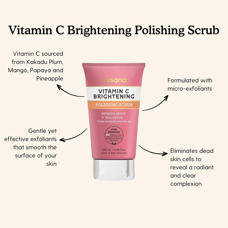 Essano Vitamin C Skin Care Set, Radiant Skincare Pack with Gel Face Cleanser (40ml), Exfoliating Face Scrub (40ml), Facial Serum (3ml), SPF15 Moisturizer (10g), For Travel or Trial, Cruelty Free
