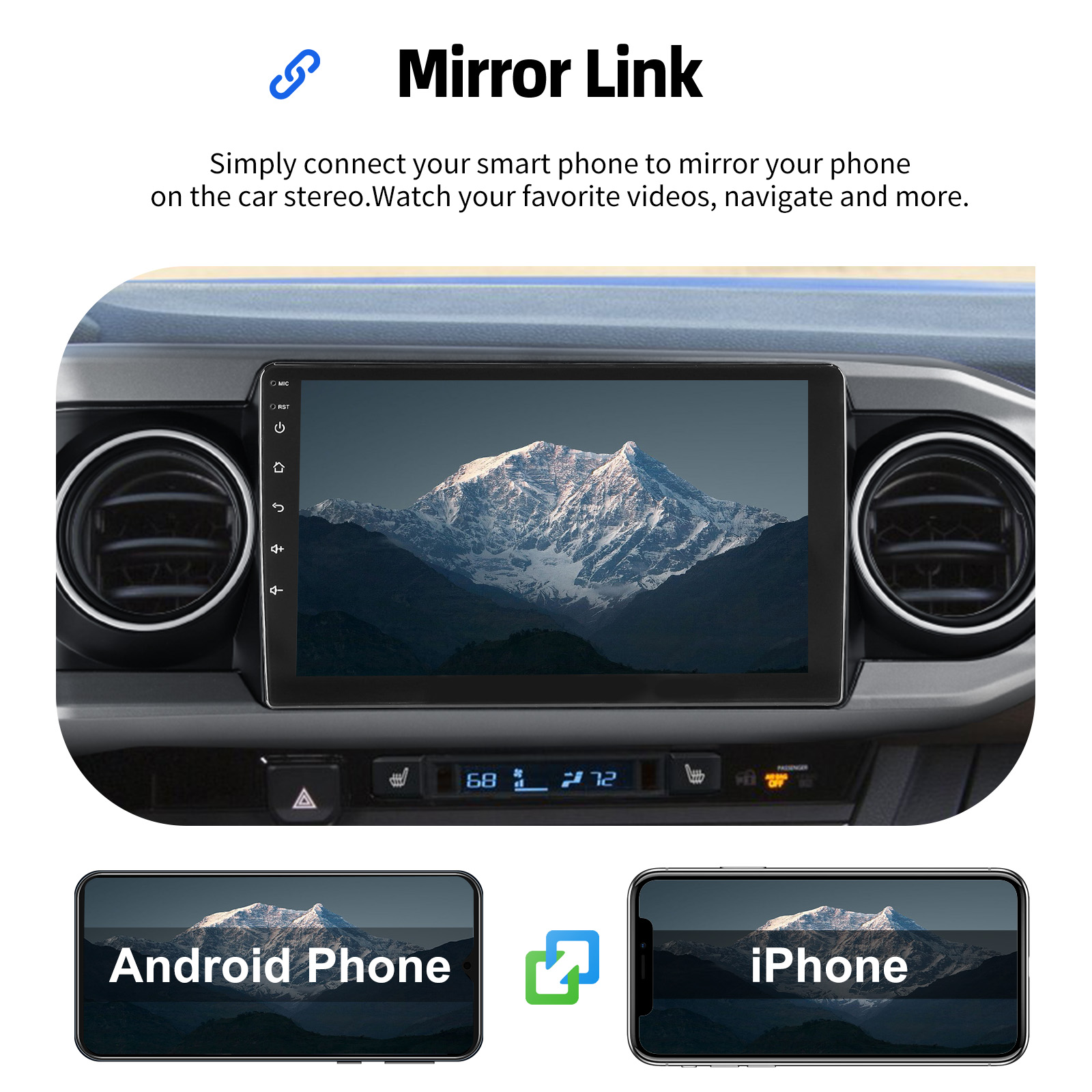 MIRROR LINK: With this car radio, you can experience the amazing Mirror Link function, compatible with iOS and Android phones. You can mirror your smartphone screen to the car radio using apps like Google Maps, Spotify, Youtube, etc. Replace your cell phone with the car screen and turn your vehicle into a smart platform.