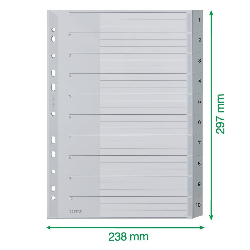 Esselte Leitz 1–10 Plastic dividers, A4, PP, 10 Sheets, Grey
