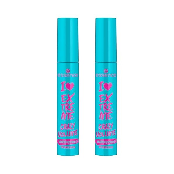 - ¡Volumen extremo a prueba de agua! Nuestra máscara de pestañas favorita I LOVE EXTREME CRAZY VOLUME de essence, ahora disponible en versión a prueba de agua. Con una fórmula cremosa y cepillo extra-largo, ésta máscara de pestañas brinda un acabado voluminoso y dramático.