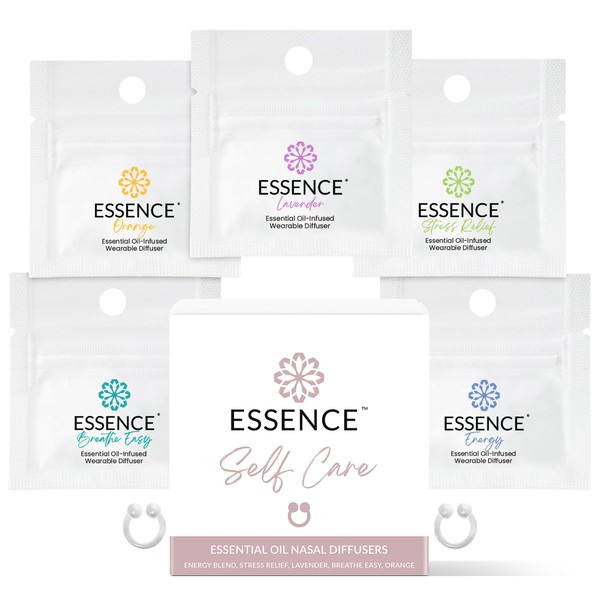 Essence Nasal Diffuser Self Care Bundle – Essential Oil Silicone Nose Rings for Stress, Energy & Mental Clarity – Wearable Aromatherapy Pack for Wellness & Mood Balance