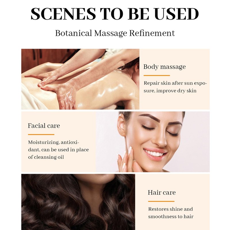 - Aging prevention: Nourish your skin with our vitamin C massage oil, which activates the vitality of the skin, improves the antioxidant effect of the skin and slows down skin ageing.