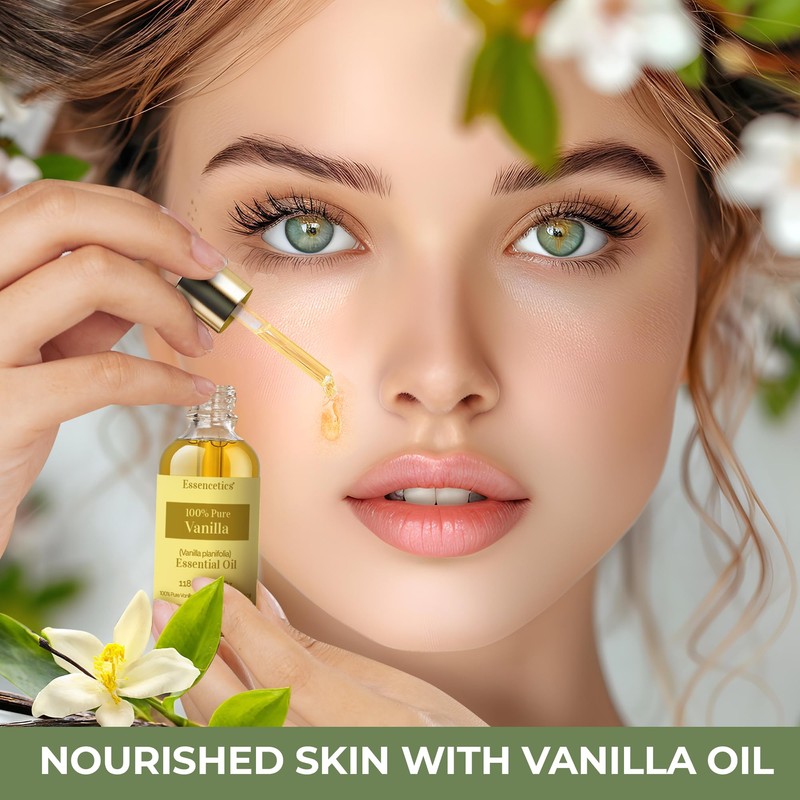 - VERSATILE & CONVENIENT PACKAGING — Comes with a dropper for precise use and a roll-on applicator for easy application on skin. Our organic vanilla essential oil for skin is ideal for aromatherapy, body and skin care, offering flexibility in how you enjoy the benefits of vanilla