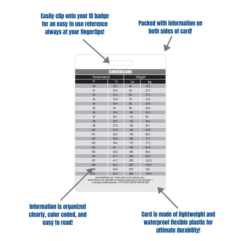 - MEDICAL INFORMATION WHERE YOU NEED IT - Don't be caught off guard, these badge reference cards are a perfect cheat sheet when you need them on the spot. They fit perfectly on your badge! These are the essential certified nursing assistant, medical assistant, and medical technician supplies and accessories!
