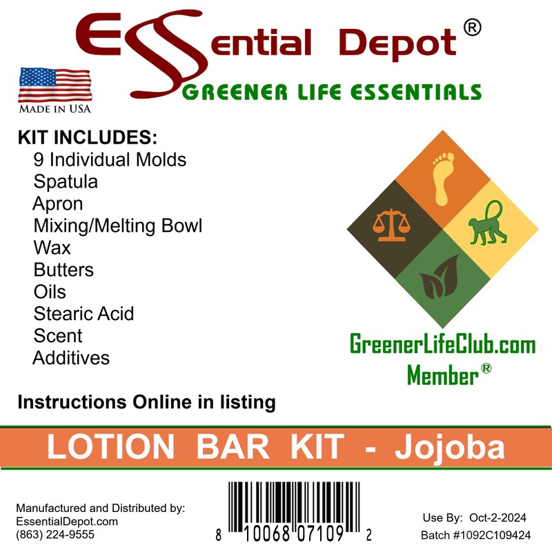 Essential Depot Lotion Bar Making Kit (Deconstructed) - JOJOBA - only a Heat Source Required to Make 9 Lotion Bars from Scratch - Natural Ingredients Without Chemicals or additives