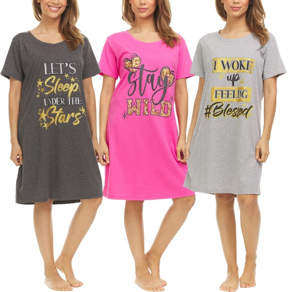 - 3 PACK VALUE SET: Includes 3 woman's night shirts at an amazing value. Machine wash cold with like colors, tumble dry low.