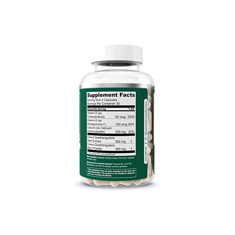 Essential Elements Essential Elements Bone Boost Bone Health Supplement - Bone Support and Calcium Supplement with Vitamin D 3, K2, Cissus Quadrangularis for Bone Strength - 180 Capsules (60 Day Supply) (2-Pack)