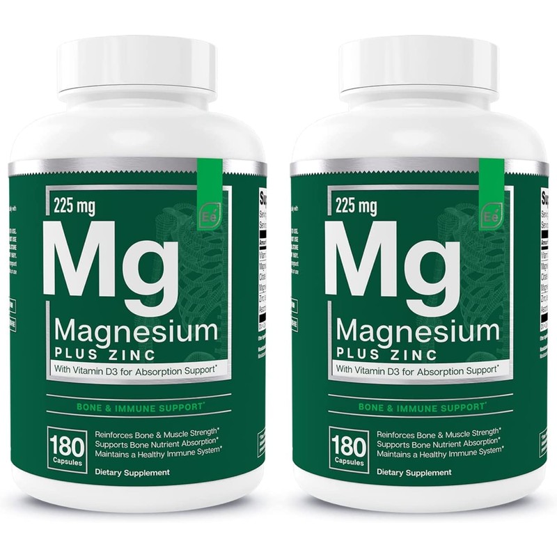 Essential Elements Magnesium & Zinc with Vitamin D3 for Sleep Immune & Bone Support - Magnesium Glycinate, Malate, Citrate 200mg - Triple Magnesium Supplement for Women and Men - 6 Month Supply