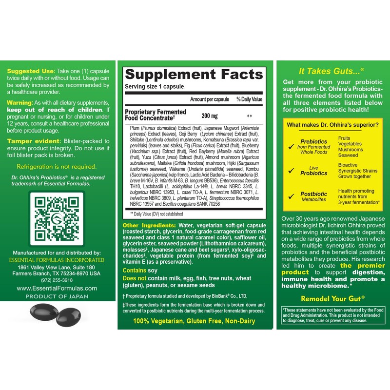 - A DIFFERENCE YOU CAN SEE AND TASTE: Dr. Ohhira's Probiotics are in easy-to-swallow vegetarian soft gel capsules, but when you cut open or chew the capsules you can taste the figs and plums that are used in the fermentation process. They taste like food - because Dr. Ohhira's Probiotics are food with all of the benefits for traditional fermented foods.