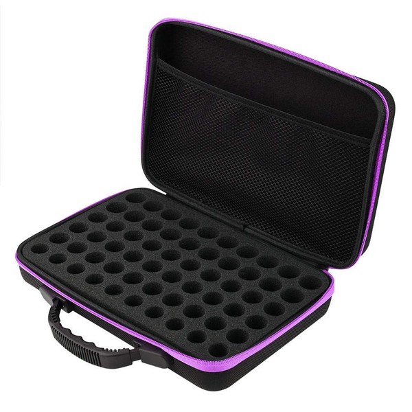 Essential Oil Box, 60 Bottles Essential Oils Handle Carrying Case Hard Shell Exterior Storage Organizer for 5ml,15ml,10ml Bottles(Purple)