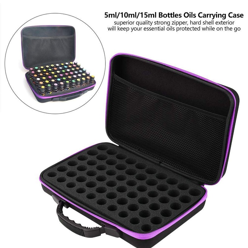 Essential Oil Box, 60 Bottles Essential Oils Handle Carrying Case Hard Shell Exterior Storage Organizer for 5ml,15ml,10ml Bottles(Purple)