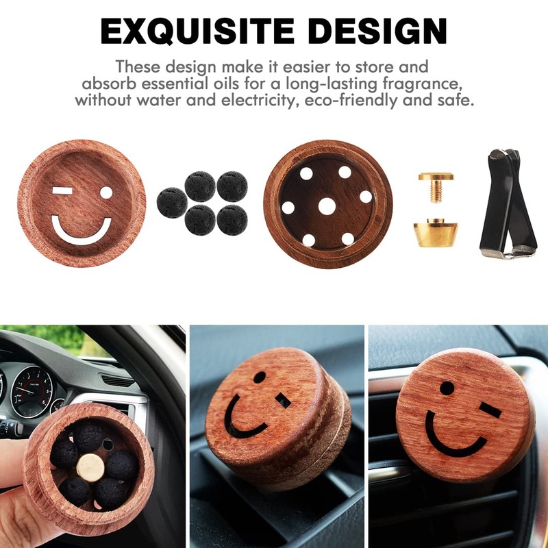 - PACKAGE INCLUDING: 2PCS Rosewood Smile Shaped Car Essential Oil Diffusers (G-Type)(This product does not contain essential oils). Notice: The wood car diffuser has no fragrance, so whether the essential oil fragrance can last depends entirely on the quality of the essential oil.