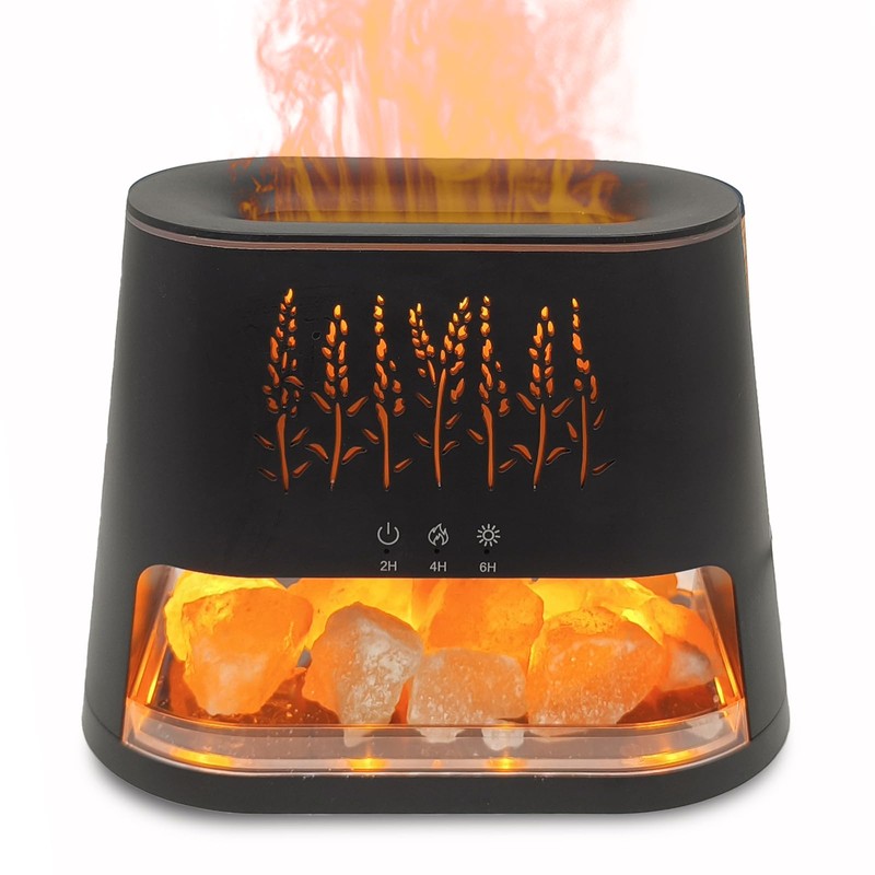 - [Himalayan Salt Diffuser for Essential Oil] Natural Himalayan sea salt crystals release negative ions, refresh air and creat a soothing atmosphere. Add your favorite essential oil to the scent diffusers for home-the Himalayan pink salt aids in filling your space with natural scents. Combining aromatherapy and salt therapy, 2-IN-1 unique Himalayan salt lamp diffuser relieves your mood under simulated fireplace ambient light. The diffuser oil machine infuses your home or office with natural energy.