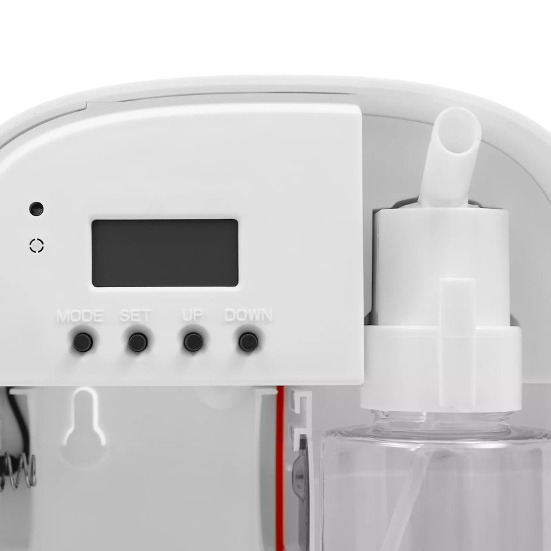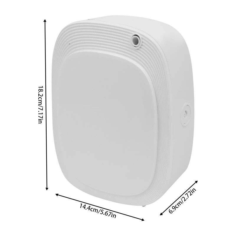 SpecificationMaterial: PPProcess: Injection MoldingColor: WhiteShape: RectangularStyle: ModernMount Type: Wall-Mounted/TabletopOperation Mode: ButtonsDisplay Screen Type: LEDCharging Interface: Type-CVoltage: DC1.5V/5VPower: 5W/8W (Type-C Power Supply)Batter Type: 3 * D-Size Dry Batteries (Not Included)Adapted Batteries: Dry Batteries, Rechargeable Batteries (Not Included)Number of Fog Outlets: 1Available Timing Periods: 5Battery Life: Approx. 100 DaysSpraying Interval: 90-600sWorking Time: 3/4/5/6/7/8sNoise: <30dBBottle Capacity: 150ml/5.07ozCoverage Area: 100-300m³/3531.47-10594.4ft³Product Size: 14.4*6.9*18.2cm/5.67*2.72*7.17inPackage Size: 24*20*8.5cm/9.45*7.87*3.35inGross Weight: 0.5kg/1.1lbsNet Weight: 0.4kg/0.88lbs
