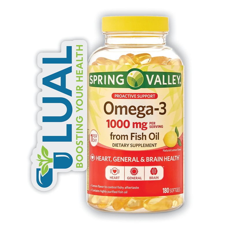 Essential Omega-3 Support for Heart, General, and Brain Health. Includes Luall Sticker + Omega-3 Spring Valley 1000mg Fish Oil 180 Soft Gels