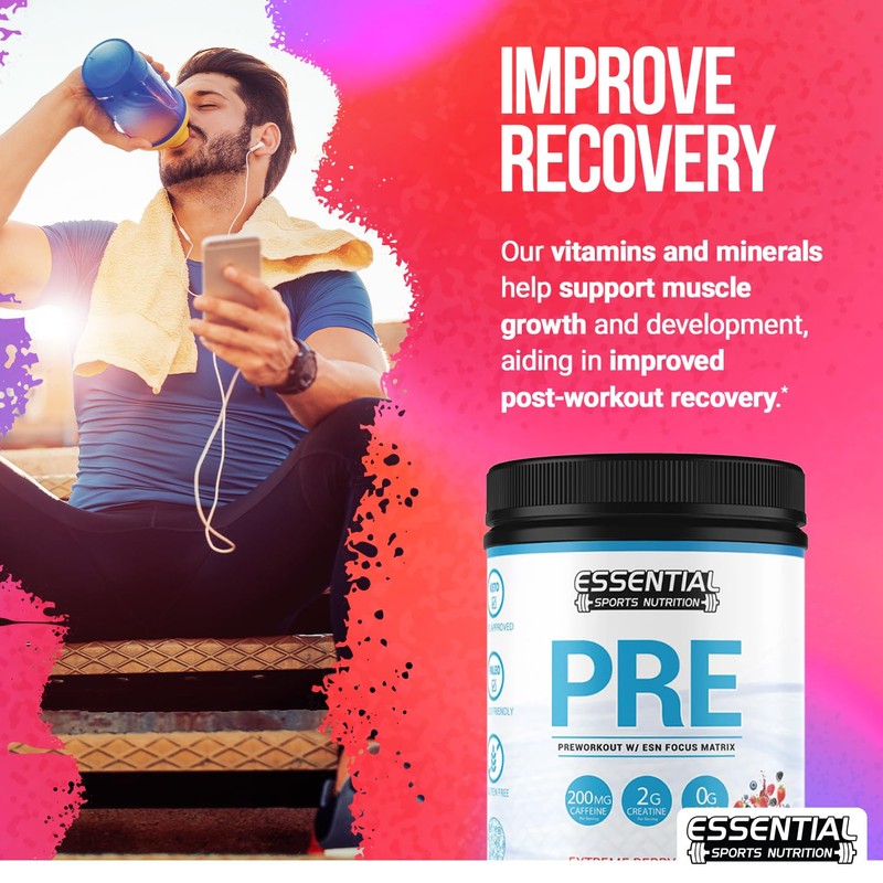 - EXPERIENCE NOTICEABLE RESULTS: Feel the difference from your very first scoop! Essential Pre-Workout is crafted for those who demand results, providing lasting energy and focus to help you break through barriers and exceed your fitness goals. Ready to transform your workouts?