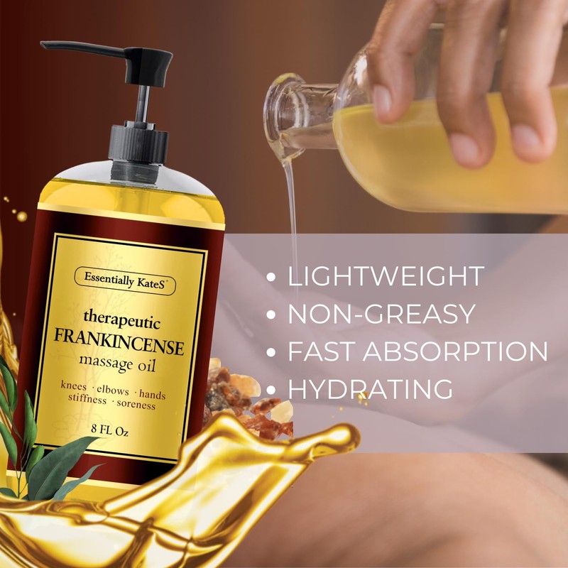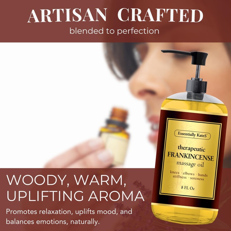 Essentially KateS Frankincense Massage Oil 8 Fl Oz - Knees, Elbows, Hips, Hands, Shoulders and Legs - 100% Pure Frankincense Oil Relaxes Soreness and Stiffness